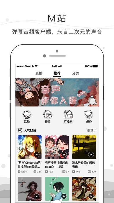 1、MissEvan弹幕音频网是国内知名的二次元声音分享站,常被动漫迷们昵称为M站,妹站;