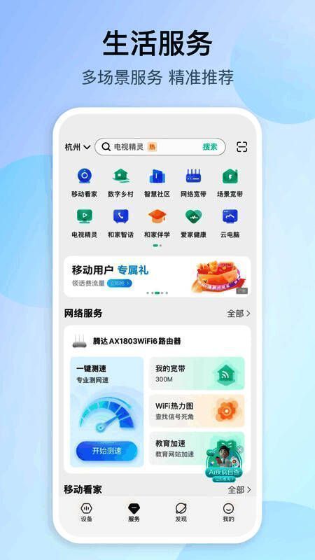该应用还整合了中国移动的多项业务服务功能,如宽带续包、提速申请、生活缴费等。用户无需切换多个平台,即可在一个应用内完成所有相关业务操作,节省大量时间和精力。