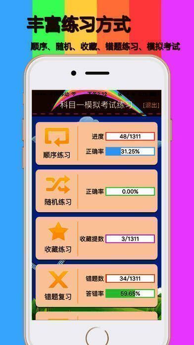 丰富练习方式,顺序、随机、收藏、错题、模考