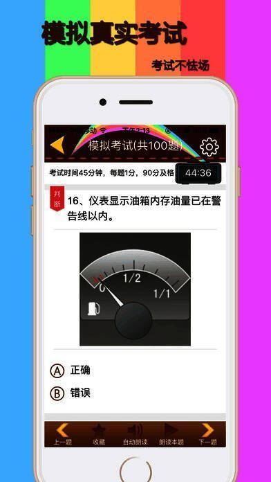 《科目一模拟考试练习》,智能学习助你通过科目一考试!包含多种练习题库方式,具有语音朗读功能,随时随地,随机复习科目一题库,还可以收藏经典题目,反复练习。更有错题复习,让你不断复习易错的题目。