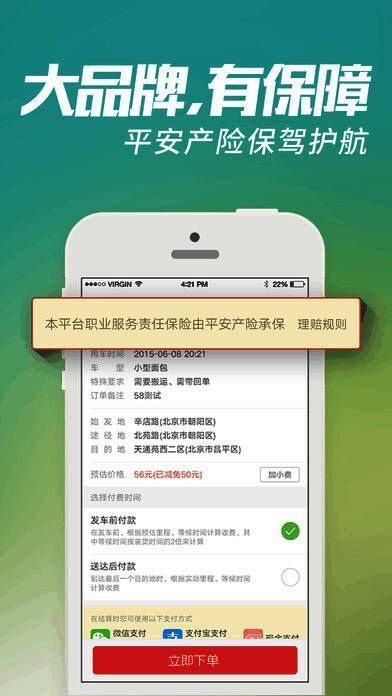 拉货、搬家就找58速运,平安产险承保,保证您的货物安全快速到达!下载APP即可实时召唤您身边的专业货运司机、搬家师傅,15秒接单,15分钟抵达,仅需33元起。