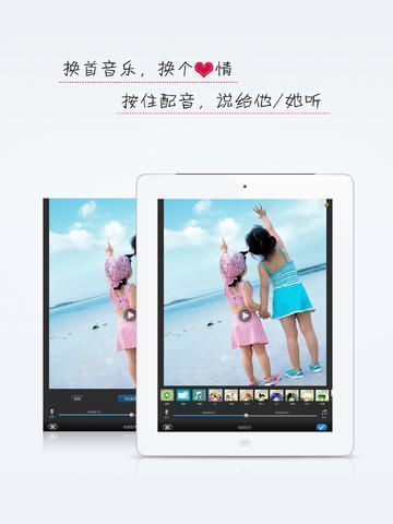 『配音配乐』提供多种风格的音乐,当然也支持用户本地音乐,作自己的MV吧。对着手机说出你的告白,为亲友送出你的祝福,轻松配音为自己留住美好的回忆;