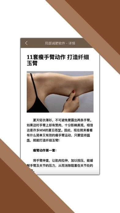 《局部减肥软件》是款运动健身类软件;通过了解软件面向的是女性,该款软件能有效的对女性局部肥肉进行讲解锻炼,然您的身材一天比一天棒,该软件非常的实用,并且免费下载,内置内容还没有收费得,此款软件良心巨作。