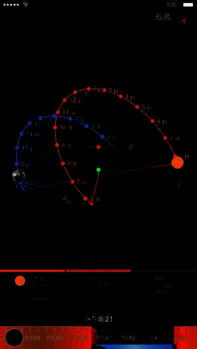 4、查看太阳及月亮的位置:地球上任何地点、任一时刻,由您选择;