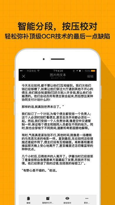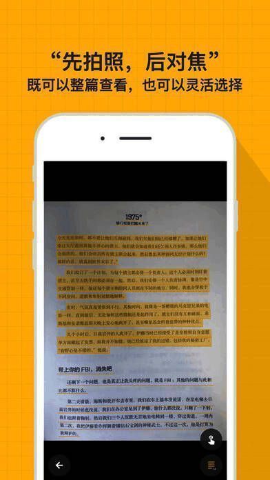 先拍照,再对焦”。拍完再自由选择查看整篇内容或者单独一个段落。