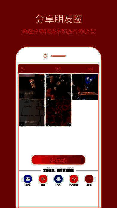 你还在一张一张的加水印吗?下载《爱水印》为你提供一键批量水印添加功能,让你可以大批量的添加水印,节约你的时间!不仅如此,软件还可以轻松一键分享到你的朋友圈哟!