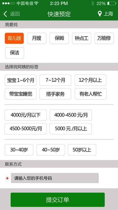 2、阿姨资料、往期工作经验、工作生活照片信息等一目了然,在线预订服务,五分钟内响应。(乐家妈妈旗下阿姨都经过身份验证流程及背景调查。身份真实、可靠,专属的保姆公寓和专业的阿姨培训提供最优质的阿姨)