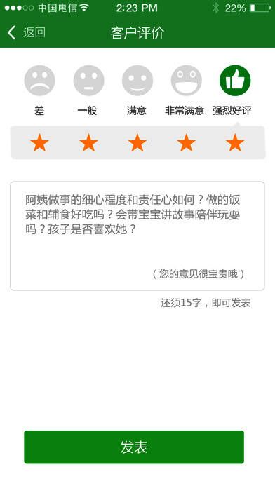 3、最真实的老用户评价,用真实提升服务。前雇主对阿姨最真实的评价给您最有价值的参考,我们从不自卖自夸。