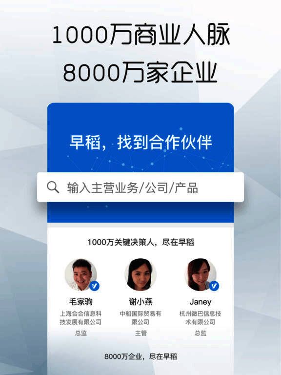 《早稻》是一家专业的商业信息平台,可以为您提供专业的企业信息查询,让您可以快速的鉴别合作伙伴,精准的找准客户。只要输入关键字,就能批量找到符合条件的选项。更有筛选功能,助您一步到位找到想要的信息。