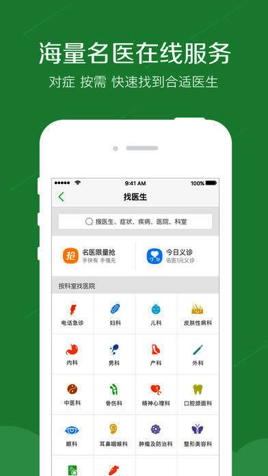 2、[找医生]:50个科室,2000种擅长疾病,40万医生遍布全国,总有一名能帮到你;