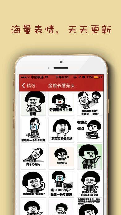 1、聚集全网最好玩的表情包:恶搞表情,金馆长表情,小学生表情全搜罗,还有当下最火的电影电视剧中人物表情,让朋友和你聊天乐不停。