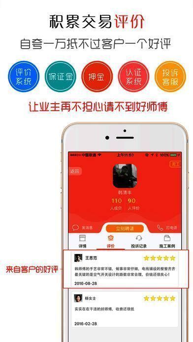 4、在这里让您的居家装饰更轻松、实惠!在这里让工友师傅们找到更多的工作机会!在这里让装饰公司的项目更容易实施!在这里让家居建材商的线下消费引流更多顾客!在这里让想通过劳动创造美好生活的人更自信!