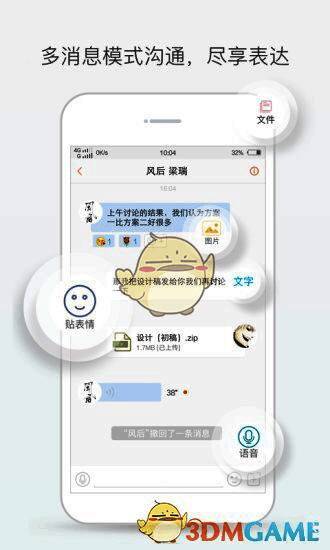 1、聊天中的文件自动进文件管理,文件永不删除,保证企业文件不丢失。