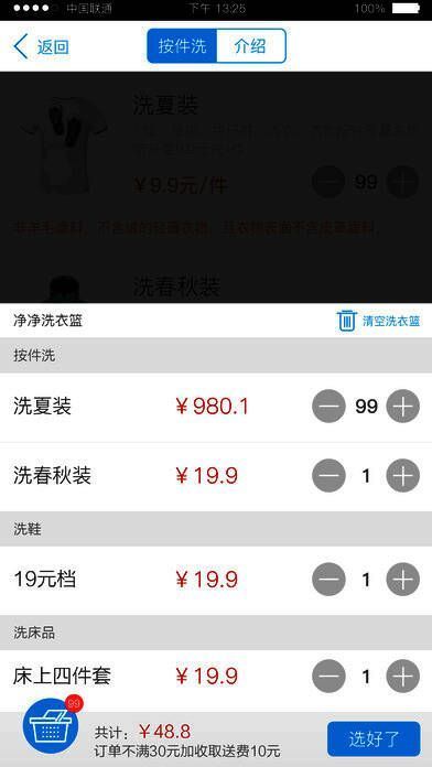 2、一键召唤,赠衣篮。免费上门取送。