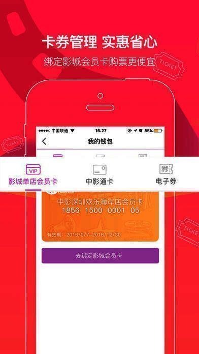 您的所有电子券、会员卡、中影通卡将整合在您账户下的“钱包”内,随时查看自己余额。