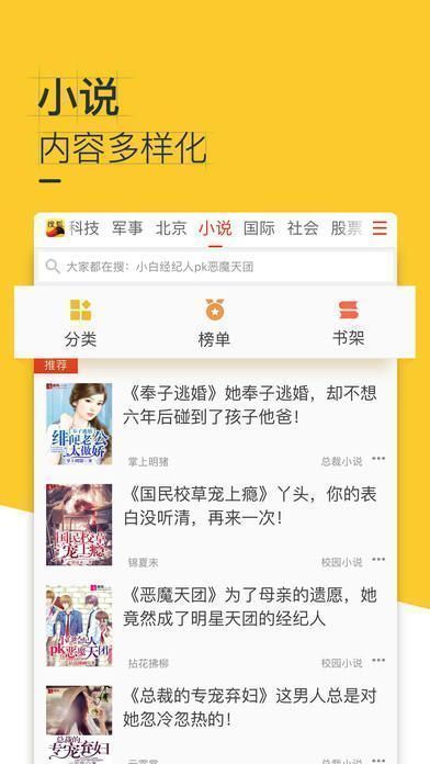 资讯看多了想换个口味?打开小说频道,网络经典流行小说,海量爆款,随时开启轻松阅读。