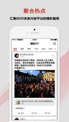 海量实时热门资讯在线阅读尽在《趣闻天下》!这款软件不仅能为你提供非常全面的阅读方式,还能让你可以用视频、图片、文字的方式多方面了解实时热点!还在犹豫什么,赶快下载软件开始使用吧!