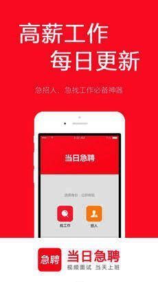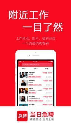 中国领先的全行业招聘平台,视频面试,24小时急速上班!基于地理位置,寻找附近靠谱的好工作或人才,和企业老板、直接手机面试,最快当天上班!急招人、急找工作的必备神器!当日急聘app,是对于于全制造行业招骋的手机软件,短视频就可招聘面试。根据所在位置,找寻周边可靠的好的工作或优秀人才,和公司老总立即手机上招聘面试,更快当日工作。急聘人、急找工作的必需武器。招骋求职找工作武器,老总直招,电话面试,当日工作,能够找寻同城服务正式工或做兼职、见习的工作中机遇。加强监督招骋个人行为,让应聘者找找工作得安心。