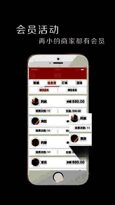 4、商户可以有效的管理自己的会员,以及发布会员的活动,进行会员数据分析;
