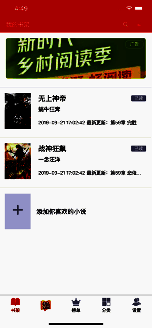 5、书架收藏,喜欢的都收入书架,好书一部都不落。