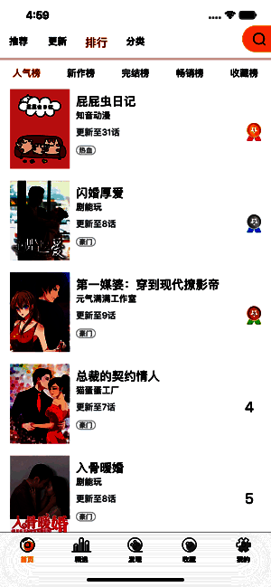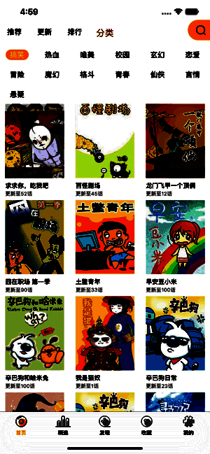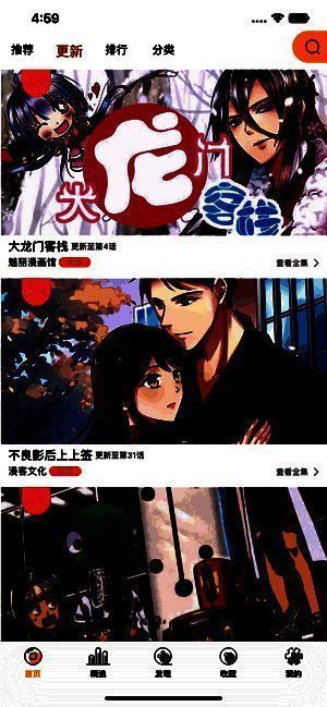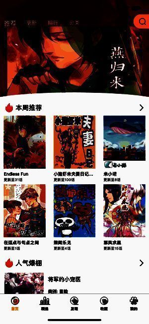 与传统模式不一样的发现界面,清爽简洁的UI设计,可以更快找您喜爱的漫画。