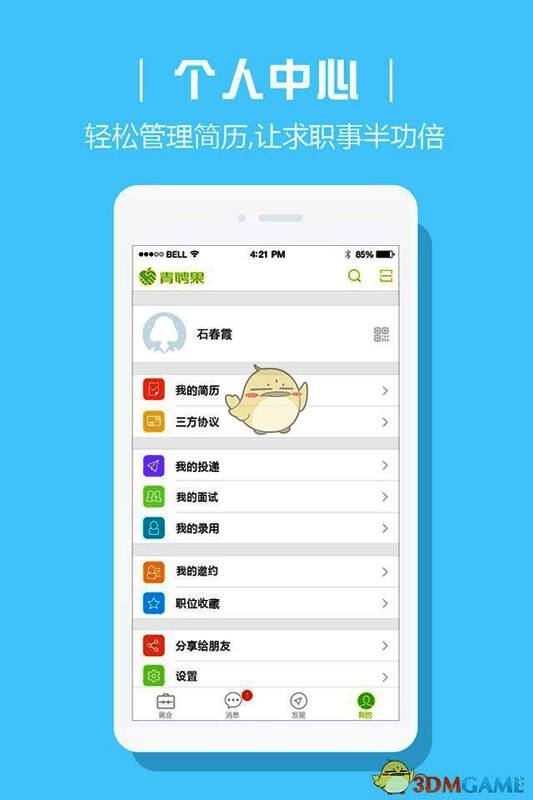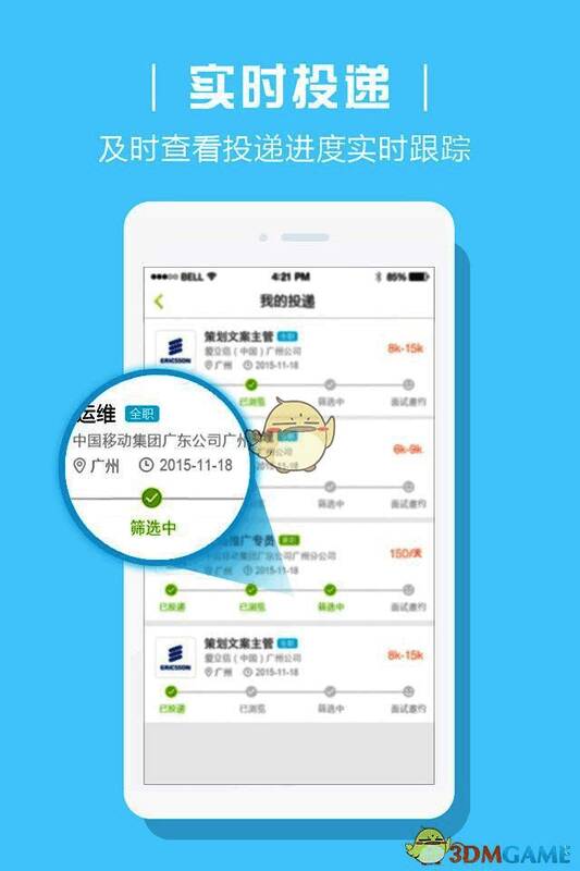 2、设置自己的个性主页,实时投递简历。