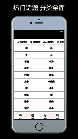 2、上百个题材分类,按照:叙事、写景、写物、写人等上百个分类划分,帮助学生全方位地修炼作文功底;
