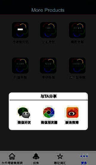 新增加单词书:SSAT核心单词、GRE单词、GMAT单词、考博单词、BEC等单词书和中考英语词组、高考英语词组、四级英语词组、六级英语词组、考研核心词组、雅思托福词组等词组。