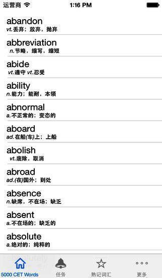 《灵灵单词四六级专版》是一款专门用于外语学习的软件,收集了约6000个考试常用词汇,帮助您学习单词。本软件会帮您把记熟悉的软件跳出来不再复习,把精力全部都放在仍未熟记的单词上面,避免浪费时间和精力。