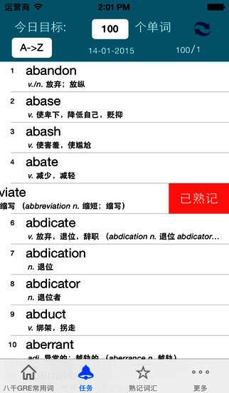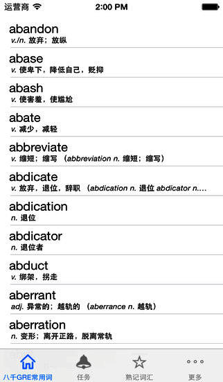 《灵灵单词GRE专版》是一款专门用于外语学习的软件,收集了约6000个考试常用词汇,帮助您学习单词。本软件会帮您把记熟悉的软件跳出来不再复习,把精力全部都放在仍未熟记的单词上面,避免浪费时间和精力。