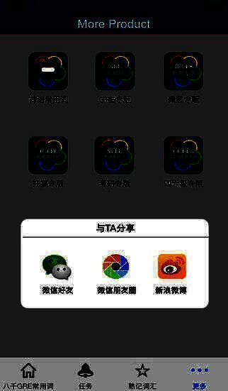 1、化整为零,各个击破:独创的单词练习战术及相应的动态练习组技术。练习时只有所选书中的10--50个单词(可选)同时参与练习----练习组,组中单词每掌握一个即被组外新单词替换一个。