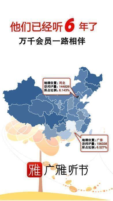 经过六年的积累,广雅听书内容已经涵盖经典文学、历史传记、养生国学、英文原著、经管励志、儿童文学、中小学教辅、实体书有声小说等十余个分类,成为百万会员的综合性听书社区。