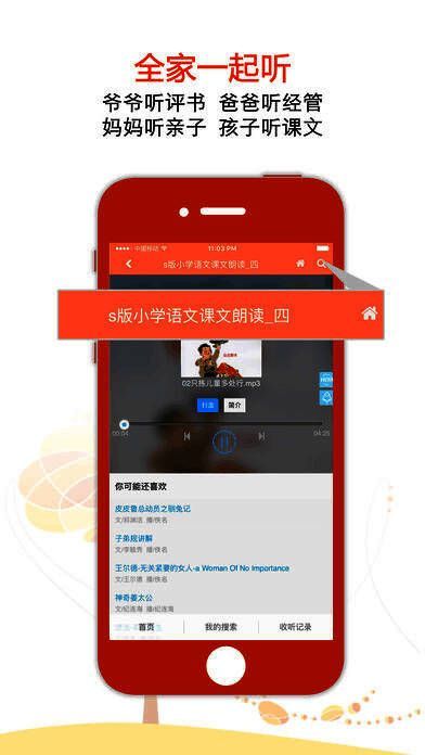 2、全家一起听,夜夜听书评,爸爸听经管,妈妈听亲子,孩子听课文,满足全家需求;