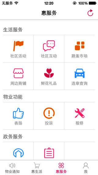 1、新增“惠服务”功能模块,提供社区活动、社区互动、跳蚤市场、周报商家、家政服务、鲜花礼品等服务内容;