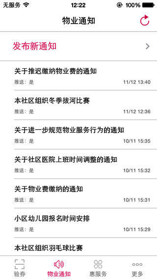 物业公司通过本软件可以快速的推送通知公告信息到业主手机上;