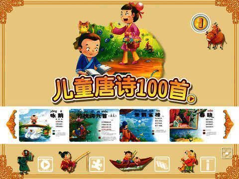 《儿童唐诗100首》是一款全新的儿童唐诗学习软件。软件内不仅有唐诗,还有精美的视频和动漫插图,让你的孩子边看动画片边学习。动画里还有卡拉OK版本的字幕,可以让孩子清楚地看到每一句诗词,《儿童唐诗100首》是帮助您孩子学习唐诗的最好的软件。