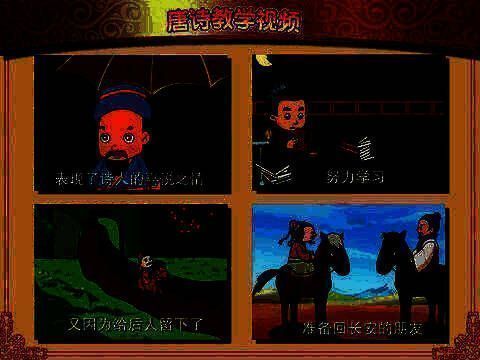 里面的动画配有卡拉OK版本的字幕,你的孩子看学习唐诗之余,认知里面生词。