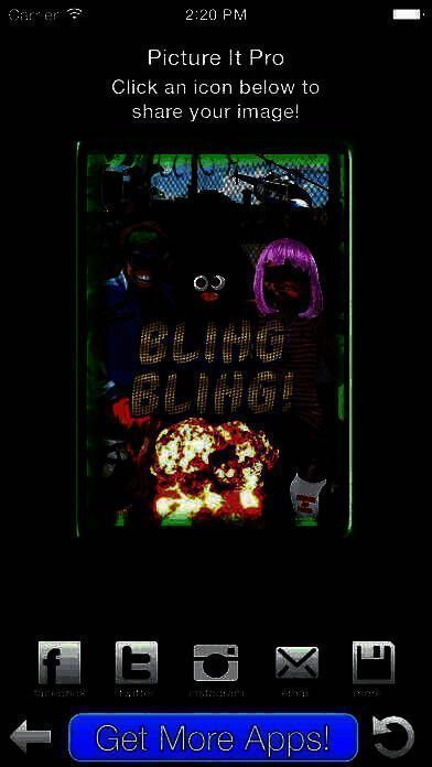 9、单击共享图标,并分享通过 facebook、 Instagram、 推特、 短信、 或电子邮件你的形象。