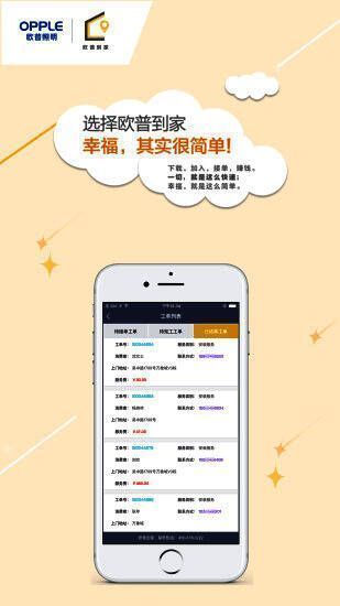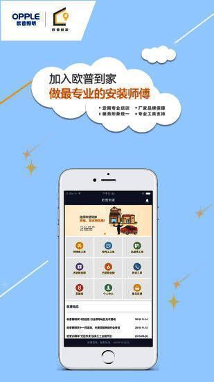 欧普照明股份有限公司专为售后制作的《欧普到家》,让消费者科技快捷方便的获得售后服务,提供更好的服务通道,让维修师傅可以通过软件轻松接单,上门维修。