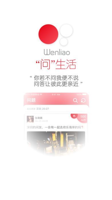 问聊是解决生活周边问题的社交app。在这里不仅可以认识附近靠谱的人,还能知道校园知识,招聘信息,作业帮助,与在线的人头脑风暴。wenliao还设置了百万有奖问答活动,在家无聊也可以抢答赚钱,还能交往附近的人,提问破冰,提高效率。問聊与喜马拉雅,知乎,芝麻问答有很大区别,多了你要的人情味