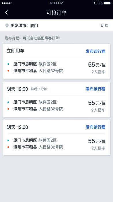 1、当前版本有3个版块,分别是专车、出租车和跨城拼车。