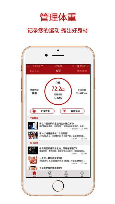 身材管理:简单时尚的界面,记录您的每日训练情况和身体状况。