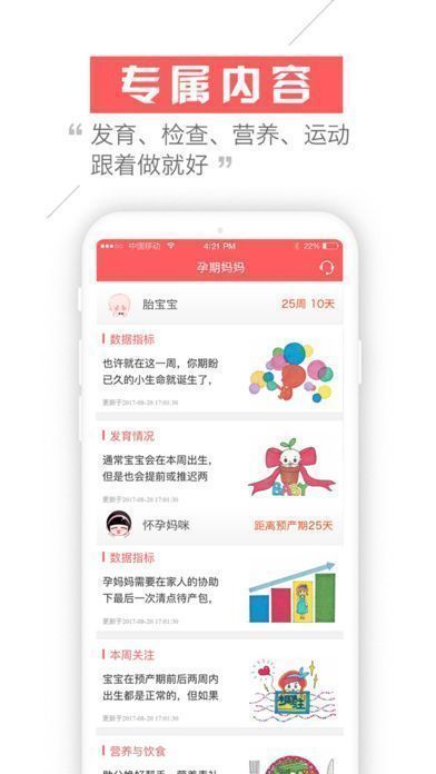 1、美好蕴育APP,以胎教为特色,提供权威备孕-孕期-育儿全孕育周期的专业服务,帮(准)妈妈们赶走备孕时的彷徨无措,缓解孕期的不适症状,走出产后的焦虑迷茫,让备孕、怀孕、育儿从此变得轻松起来;