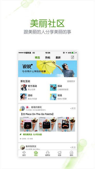 《抹茶美妆》是一款贴心、清新的美妆交流平台软件,在这里,你能从专业的美妆顾问学到护肤化妆、穿衣搭配、减肥塑身、美发美甲等化妆方法!想要变美吗?快来下载这款软件,遇见更美的你!