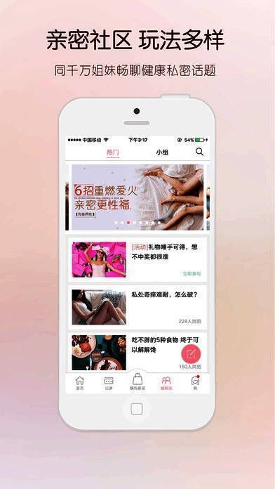 2、备孕、怀孕、孕期、育儿,多种模式任您选择!减肥、瘦身、美容、美妆、交友、购物,女生喜欢的东西全在这里!
