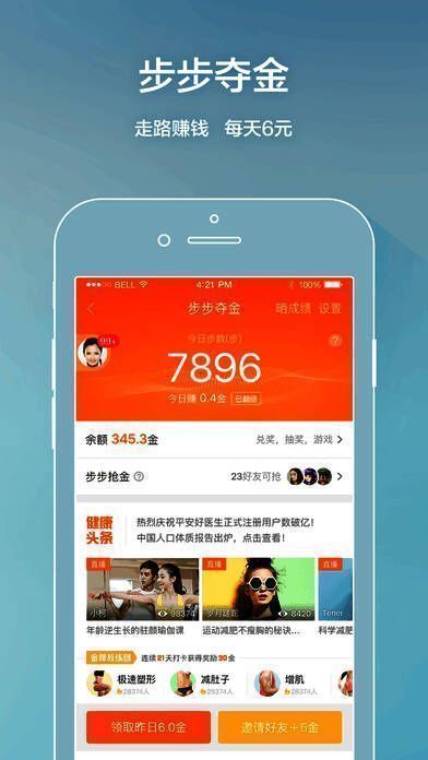 1、步步夺金――每天500多万用户通过步步夺金走出健康好身材,还可兑换自己心仪商品;