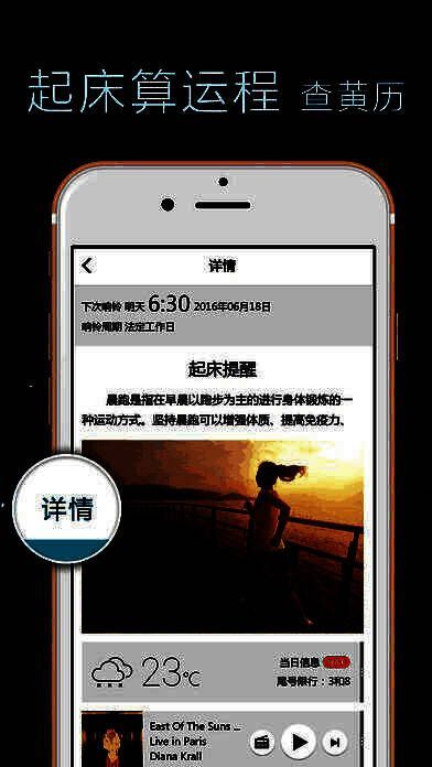 5、享受你的赖床时间:闹钟响后还不想起床?那就来听听音乐,看看新闻吧,精选歌曲每日更新,新闻速递让你快速阅览世界;