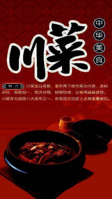 6、《川菜大全》为您提供最新的图文川菜菜谱大全--好学易做的川菜菜谱,家常川菜的做法详解,川菜菜谱图片教学,精选川菜代表菜,川菜特色菜谱,让您不仅吃到川菜美味,还能从川菜介绍中了解川菜历史文化。