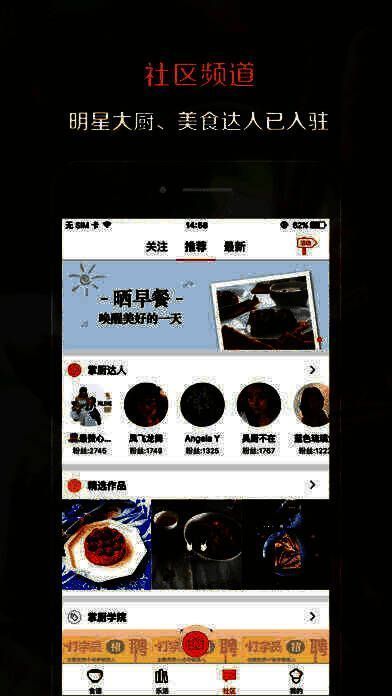 2、社区:大厨、美食达人都已入驻,关注他们偷师学艺,晒晒你的美食,你也可以成就达人。