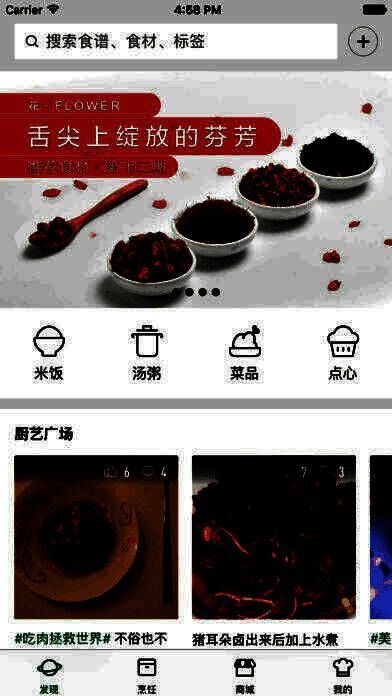 这里有精美的食谱,详细的做饭步骤,贴心的时令食材等,更有热闹活跃的厨艺交流广场,每天都有美食爱好者在更新他们关于美食的心得,记录他们的美食日记。在这里,你不仅可以找到你心仪的食谱或食材,更能找到和你同样热爱生活的亲密伙伴。
